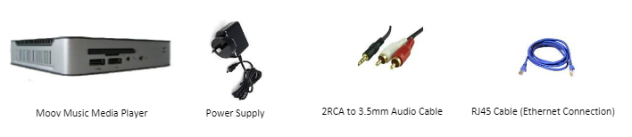 Congratulations! You have just installed your Moov Music player and should hear music playing through your speakers after the player has been turned on for 5-10 minutes. Simply adjust the amplifier volume control to a suitable level and adjust the amplifiers bass/treble controls to your liking (if needed).